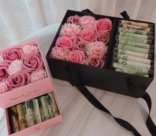 그냥 현금만 드리기 뭐하다면 최근 유행하고 있는 용돈 박스를 고민해 보는건 어떨까요? 아름다운 카네이션 속에 고이 포장된어 일렬로 세워진 신사임당과 세종대왕이 보인다면 부모님의 기쁨은 아마도 두 배가 될 것입니다^^
